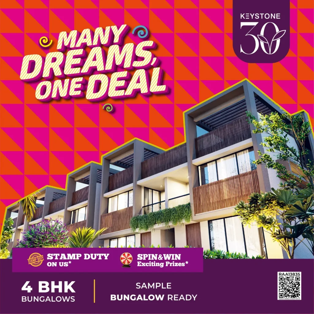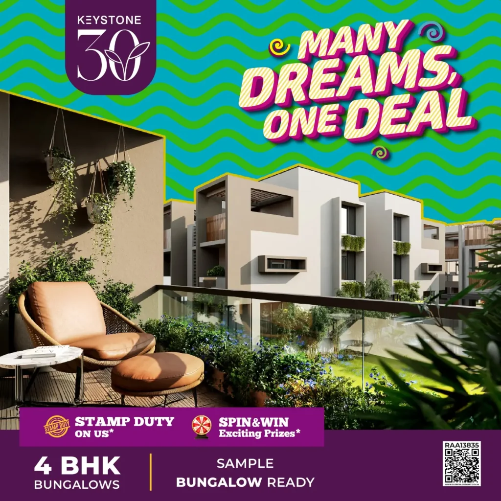 Step into Keystone 30, where every corner of your dream bungalow is crafted for luxury, comfort, and modern living. Imagine a spacious garden , a grand living room with Italian marble flooring, a fully equipped kitchen , and a ground-floor bedroom with attached washroom perfect for parents.